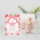 Red Coquette Bow Cherry First Birthday Party Photo Invitation