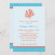 Modern and elegant bridal shower invitation. Great for a marine or nautical theme. Features a red coral on a light blue background and a pattern stripe on the bottom. Coral and turquoise colour combination. Trendy yet classy. Add your own wording. Can also be customised for a birthday party or similar event. Matching postage stamp, envelope seal, party favour sticker, wedding planning binder, and other products available in this store.