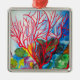 From an original artwork painting in watercolour by Sacha Grossel of fire coral red coloured coral and colourful lichen rocks from the Great Barrier reef. This special coral reef under the sea ocean theme original artwork is vibrant and colourful.
