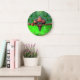 RED CORAL ROSES,BLUE EMERALD GREEN DAMASK MONOGRAM LARGE CLOCK