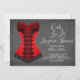 Ooh La La Lingerie Bridal Shower Invitation featuring a lacy black & red corset set on a popular chalkboard background with a coordinating back