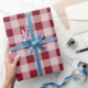 Deep red gingham decorates this festive Christmas wrapping paper. The design is from original art.