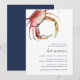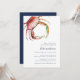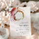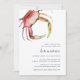 Coastal chic baby shower invitation features a vintage style watercolor red crab illustration, with your baby shower details in classic navy blue. Perfect for beach, summer, or nautical theme baby showers, these coastal style invitations reverse to solid navy blue.