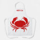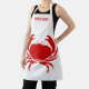 Big red crab kitchen apron for men or women. Cool gift idea for seafood chef. Great for cooking or grilling shellfish at home or restaurant. Novelty BBQ aprons for him or her. Big and small size. Personalise with your own text and logo.