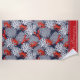 Indulge in coastal elegance with our Red Crab, Lobster & Coral Pattern on Navy background Personalised Beach Towel. This modern, stylish towel boasts a minimalist design featuring vibrant red lobsters and charming crab shellfish set amidst a backdrop of navy blue and white corals. Personalise it with family names for a special touch, making it perfect for personalised family beach towels. Ideal for beach nautical coastal sea life enthusiasts, this towel adds a retro-inspired charm with its watercolor summer pattern. Dive into tropical bliss with the vibrant red crab coral motif, reminiscent of a tropical Hawaiian coral reef.