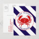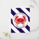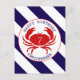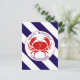 A birthday postcard invitation featuring an illustration of a red crab with blue striped background. Personalise all text.