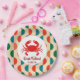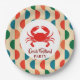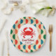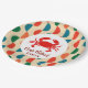 Red Crab Seafood Nautical Stripes geometric Party Paper Plate