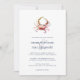 Coastal chic wedding invitation features a watercolor red crab illustration at the top, with your wedding details beneath in classic navy blue. Perfect for beach, summer, or nautical weddings, these coastal style wedding invitations reverse to solid navy blue.