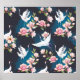 Playful Japanese-inspired Red Heads Crane Watercolor Pattern. Sprightly birds and magnolia blossoms on rich canvas.
