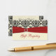 This cream, red, and black damask gift registry enclosure card matches the invitation and other items shown below.