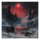 Admire an alien landscape with this design that mixes impressionism and surrealism, showing a frosty terrain under an impressive red moon. With precise details and an enveloping atmosphere, this landscape captures the wonder and mystery of a distant world in a unique artistic form. Ideal for those who appreciate detailed art and seek to add a touch of fantasy and awe to their garments or accessories. Perfect for young and adult lovers of surreal art and science fiction.