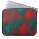 Red crisscrossing scratches over charred cyan laptop sleeve