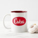 A red and white mug that says "Cuba" on it. A nice simple design that stand out from far.