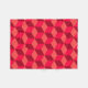 The design features an interlocking pattern of red cubes. It could be seen as reminiscent of the art of M.C. Escher, but it simply uses basic geometric forms to achieve a beautiful effect. It looks like an endless red staircase.