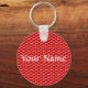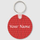 Personalise, or leave blank and enjoy the red square design. Reminiscent of a ping pong paddle surface. Fashion keychain is 2¼" round - fits nicely in your pocket or purse. Vibrant colours covered with scratch- and UV-resistant Mylar. Resists fading. Tight-fitting clasp keeps your keys safe.