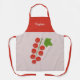 An apron with an illustration of red currants on a light pink background and a customisable first name above on a red background. A lovely gift for a friend who loves berries. It could also be used in a store when you're working!