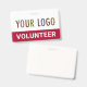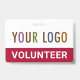 Easily personalise this plastic volunteer badge with your event or team logo, volunteer title, or other custom text. It's PVC plastic and available with a lanyard, metal clip, or a retractable reel. This is a red name badge you can customise to a different colour and optionally add content to the back. No minimum order quantity and no setup fee.