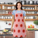 Seamless pattern of Daisy flower with red petals and yellow disc printed on apron. Floral design apron for lovers of flowers or nature. Apron to protect your clothes from stains of food ingredients while grilling barbeque outdoor or preparing food in your kitchen.