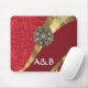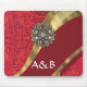 PERSONALIZE this chic elegant stylish vintage antique red damask floral swirl pattern and a modern gold swirl design ribbon and faux crystal rhinestone jewel photograph print, with your own text, name or monogram, initials .