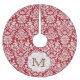 Red Damask Lace Print Monogram Initial Tree Skirt