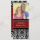 Elegant wedding vow renewal custom photo invitations in red, black and white floral damask pattern with fully customisable text to include your vow renewal ceremony details.