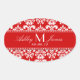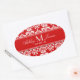 Red Damask Wedding Wine Label Oval