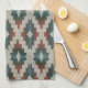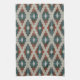 Red Dark Brown Teal Blue Grey Tribal Art Pattern Tea Towel