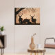 Red Deer Stags Poster with `Red Deer Evening Silhouette' an original artwork by `Cathy Sharpe' painted in Acrylics, A group of Stags graze in the evening fog.