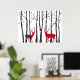 Red deers in birch tree forest poster