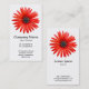 A clear stylish and attractive business card template with an attractive "Red Devil" African Daisy (Arctotis × hybrida) flower motif. Main company details on the front, with name and personal contact on the back, with the same motif and style.