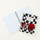 video game controller breaking trough a black and white retro chequered background. To make it extra special, it is also monogrammed and personalised with name or initials or any text you like. This cool notebook is perfect for video games lovers, a great addition to your kids school supplies.