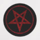 Red, inverted, textured pentagram in circle, on black background. Occult symbol. 666