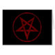 Red, inverted, textured pentagram in circle, on black background. Occult symbol. 666
