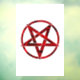 Red, inverted, textured pentagram in circle, on white background. Occult symbol. 666