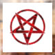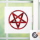 Red, inverted, textured pentagram in circle, on white background. Occult symbol. 666