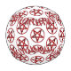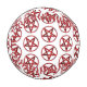 Red, inverted, textured pentagram in circle, on white background. Occult symbol. 666