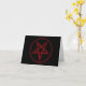 Red, inverted, textured pentagram in circle, on black background. Occult symbol. 666