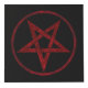 Red, inverted, textured pentagram in circle, on black background. Occult symbol. 666