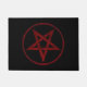 Red, inverted, textured pentagram in circle, on black background. Occult symbol. 666