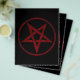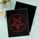 Red, inverted, textured pentagram in circle, on black background. Occult symbol. 666