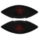 Red, inverted, textured pentagram in circle, on black background. Occult symbol. 666