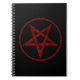 Red, inverted, textured pentagram in circle, on black background. Occult symbol. 666