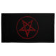 Red, inverted, textured pentagram in circle, on black background. Occult symbol. 666