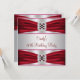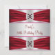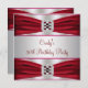 Elegant red satin ribbon and diamonds woman's purple fiftieth birthday party invitation.