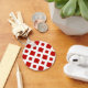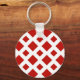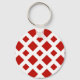 A bold, geometric pattern of large and small red diamonds on a white background. The white forms a lattice which separates the diamond shapes.