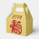 Golden customisable greeting favour bag with red dog papercut (and "drop shadow": black dog ) for Chinese New Year of the Dog 2018. All is customisable with double lettering and image to create drop shadow. Matching greeting postcard, greeting card and gift bags.