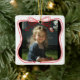 Capture your most cherished memories with this custom square photo ornament featuring a pink frame and festive red bow outline. Perfect for highlighting your favorite photo — whether it’s your child, baby, pet, or a special family holiday moment.
