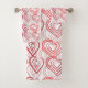 Cute romantic pattern with red hand drawn hearts on a white background.