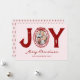 Experience a red & pink holiday season with our unique doodle Christmas card. This one-of-a-kind card features the festive word 'joy', with your cherished family photo substituting the 'O'. Set within a sketched picture frame, extend your love and seasons greetings as you emblazon the card with 'Merry Christmas, and your name'. Offering nostalgia and delight, it's the perfect Christmas memento for your loved ones.