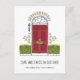 Charming and modern moving announcements let friends and family know about your new home sweet home! Design features a sketched red door illustration flanked with green bushes, with "come and knock on our door" beneath. Personalise with your new address and family name or names on the reverse side, with space for recipient addressing.